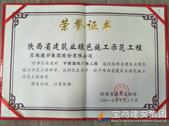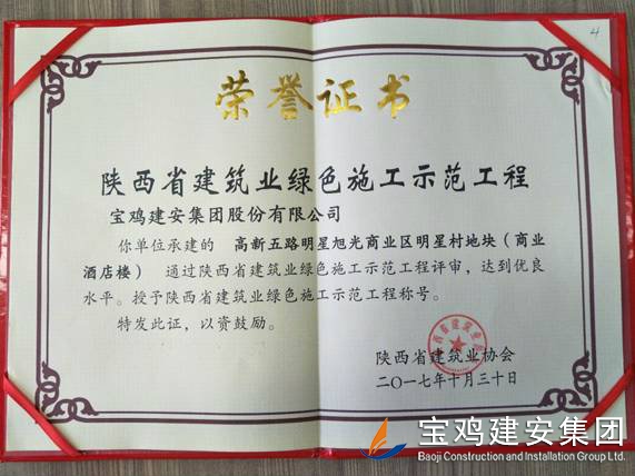 2018年1月26日在西安召開了陜西省建筑業(yè)協(xié)會第六屆二次理事會議,我公司承建的科研生產(chǎn)試驗大樓、寶雞蟠龍新居SF05標(biāo)段,高新五路明星佳苑、新建路市場改造項目(民豐國際)、中聯(lián)國際廣場項目,在2017年度綠色施工評審過程中,達(dá)到優(yōu)良水平,被授予陜西省建筑業(yè)綠色施工示范工程稱號。 此次榮譽的獲得離不開公司各職能部室的指導(dǎo)與項目部的辛勤努力,項目部能緊跟建筑行業(yè)發(fā)展的大方向,不斷加強(qiáng)綠色施工過程管理的學(xué)習(xí),在施工過程中圍繞著“四節(jié)一環(huán)?!崩砟?,堅持走節(jié)能降耗,增效降本,可持續(xù)發(fā)展的施工道路,最終取得了可喜的成績。 公司綠色施工整體水平近年來得到顯著提高,希望各項目部在2018年的施工過程中,以文明施工,綠色施工標(biāo)準(zhǔn)嚴(yán)格要求自己,力爭在施工管理方面取得更高的成績。