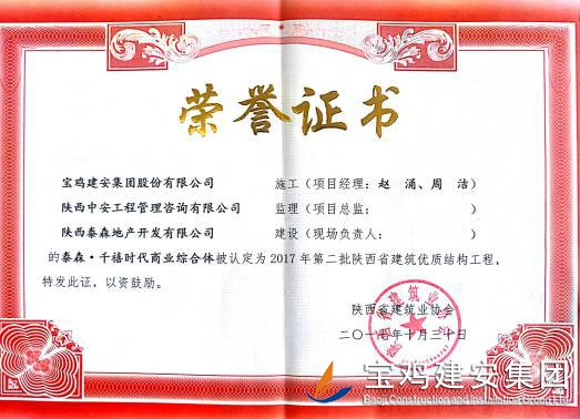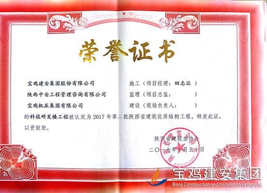 2018年1月26日從陜西省建筑業(yè)協(xié)會傳來喜訊,由寶雞建安集團股份有限公司負責施工的“科技研發(fā)樓工程”(五項目部)、“泰森?千禧時代商業(yè)綜合體”(六項目部)、“寶雞尚錦苑1#、2#樓”、“寶雞尚錦苑3#、4#、5#、6#樓及地下車庫”及“太白縣城市綜合體項目—酒店及球館工程”(路橋項目部)被陜西省建筑業(yè)協(xié)會評為2017年第二批陜西省優(yōu)質(zhì)結(jié)構(gòu)工程獎。 通過本次獲獎,各項目部能夠依據(jù)項目創(chuàng)優(yōu)要求和相關(guān)法律法規(guī)開展質(zhì)量創(chuàng)優(yōu)工作,對現(xiàn)場原材料、檢驗批、分部、分項工程及功能性設(shè)施進行質(zhì)量管理,做好“三檢”工作,切實履行了質(zhì)量管理職責。在施工過程中,公司加強對項目實體質(zhì)量和資料的檢查監(jiān)督,推行質(zhì)量標準化,確保了每一項工程都能順利驗收通過。 希望各項目部在2018年應夠繼續(xù)加強現(xiàn)場質(zhì)量意識,提升項目質(zhì)量管理水平。質(zhì)量部也將繼續(xù)總結(jié)獲獎工程的典型引路和示范作用經(jīng)驗,強化工程建設(shè)質(zhì)量管理,多出精品,推動公司總體水平穩(wěn)步提高。