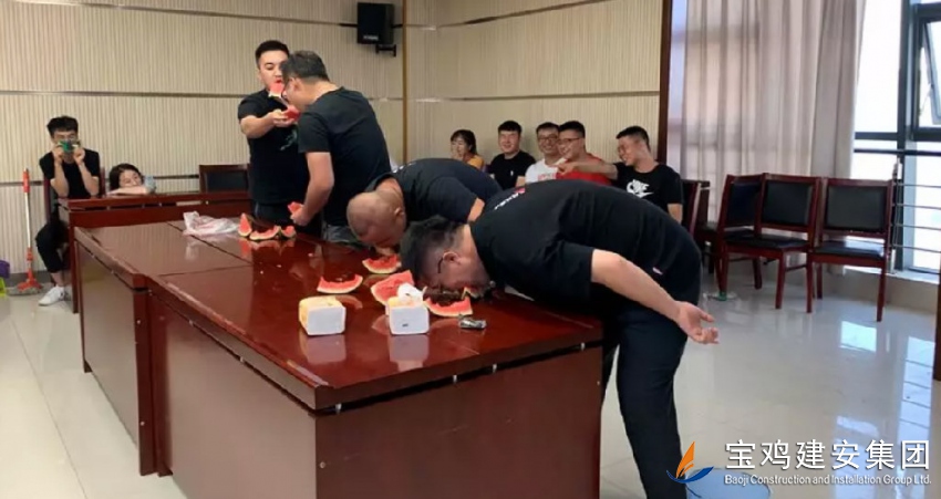 乒乓球比賽后,公司組織了吃西瓜比賽,所有新員工劃分為10支戰(zhàn)隊,伴隨著一陣陣的歡笑,每個戰(zhàn)隊都盡情展示自己獨特的風(fēng)格,最終第8戰(zhàn)隊獲得比賽的第一名。新員工參與這樣的比賽,彼此間以不同的戰(zhàn)隊、不同的合作形式,達(dá)到了更快地融入團(tuán)隊的效果。