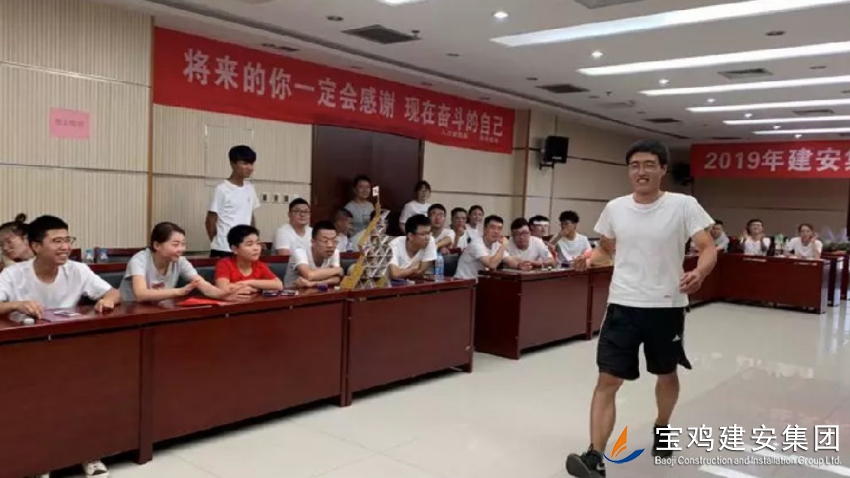 2019年7月21日,寶雞建安集團(tuán)股份有限公司在建安大廈22樓第三會議室開始了新員工入職培訓(xùn)。本次培訓(xùn)為期8天,內(nèi)容充實,勞逸結(jié)合,使新員工由校園走向社會,從學(xué)生走向職場人有了一個平穩(wěn)的過渡。