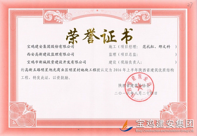 高新五路明星旭光商業(yè)區(qū) 省優(yōu)質(zhì)結(jié)構(gòu)工程